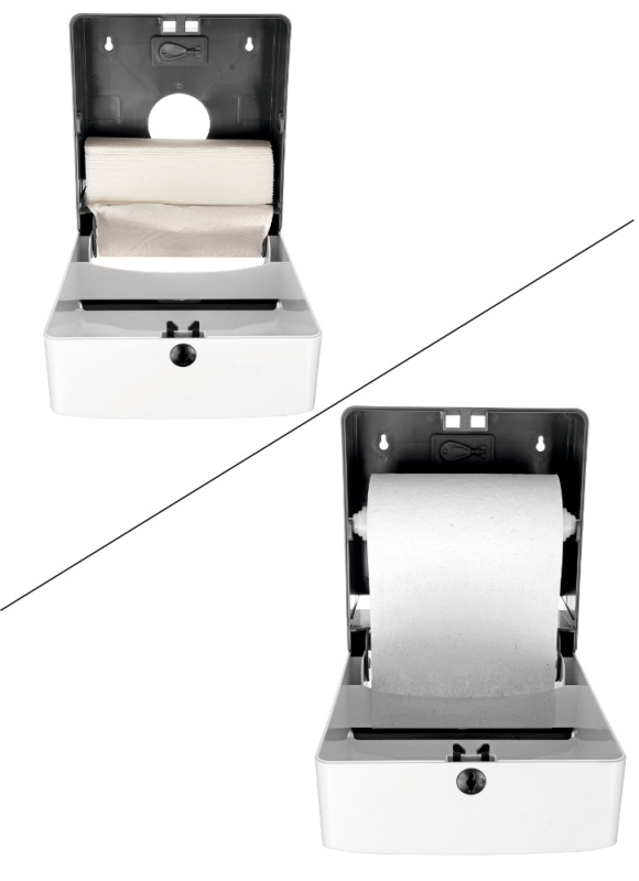BXG-PDM-8218 - универсальный диспенсер бумажных полотенец предназначен для туалетных комнат со средней и высокой проходимостью. Отличается от других диспенсеров возможностью работать как с рулонными, так и листовыми бумажными полотенцами.