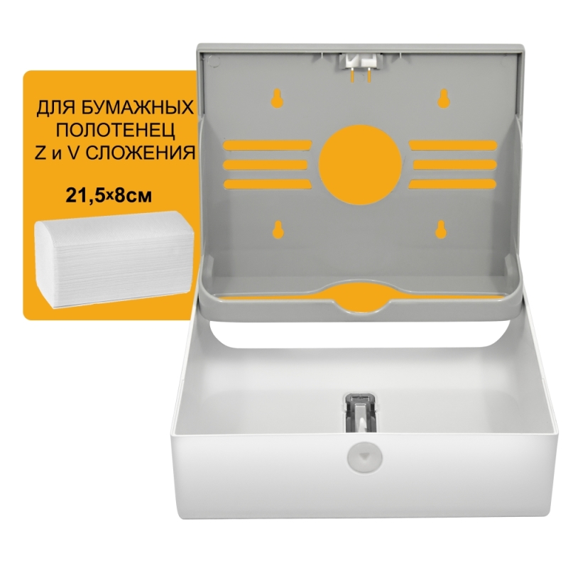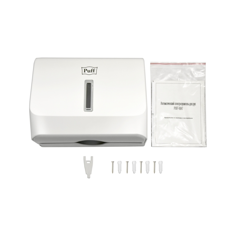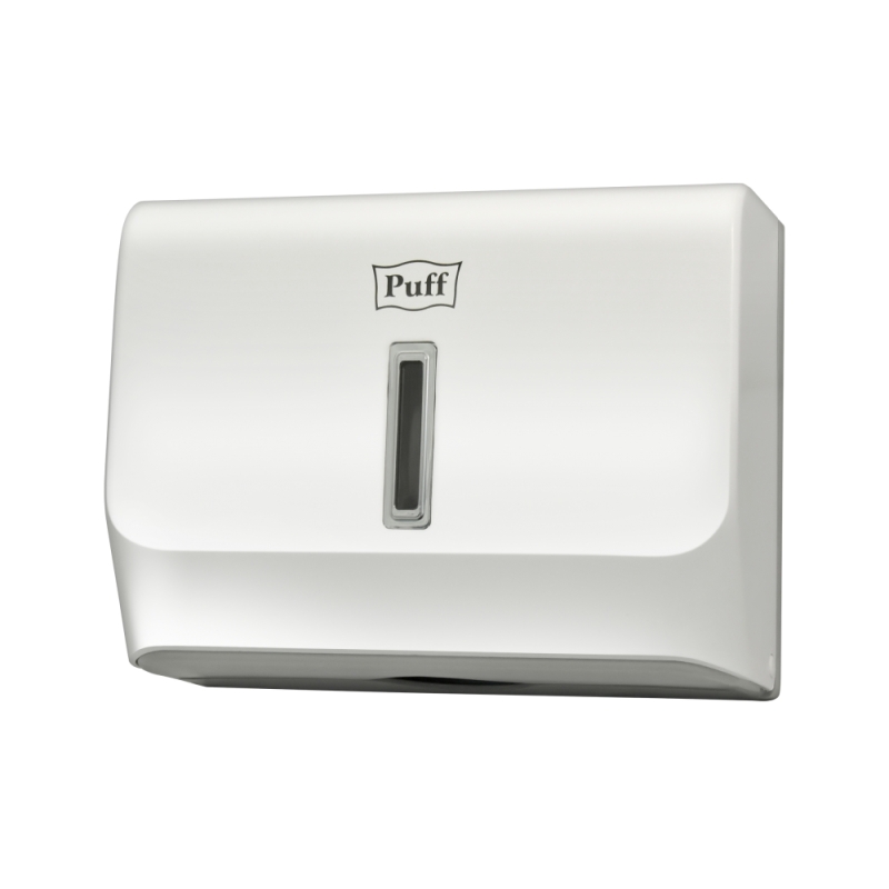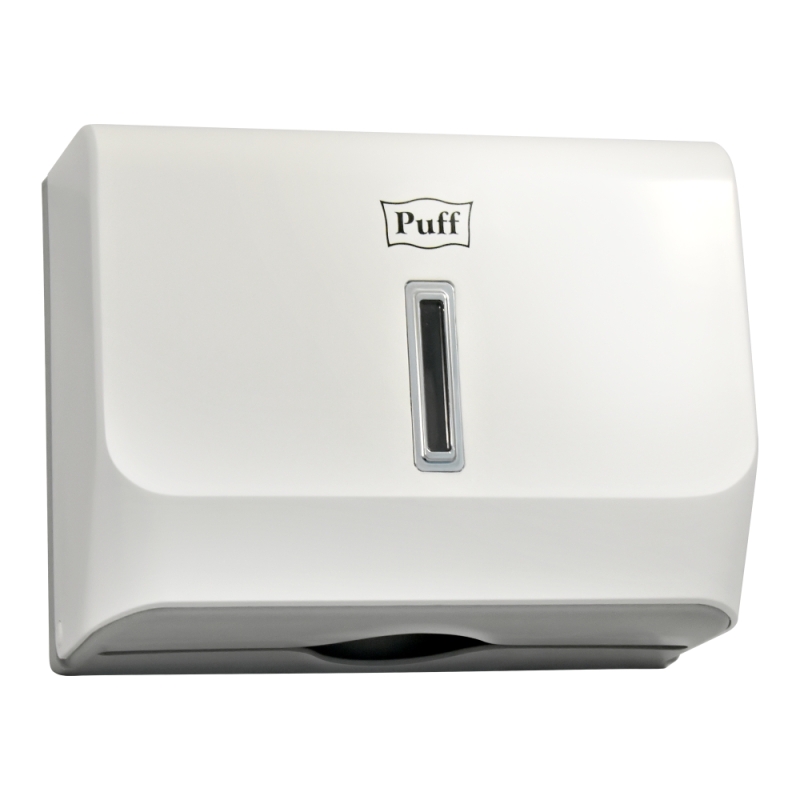 Диспенсер бумажных полотенец Puff-5130 предназначен для листовых бумажных полотенец V и Z-сложения. Используется в общественных мест со средней и высокой проходимости. Диспенсер выполнен из ударопрочного пластика ABS белого цвета. Оснащен смотровым окном. Запирается на ключ.