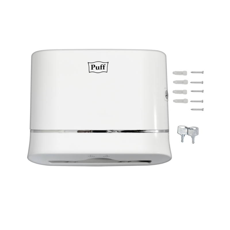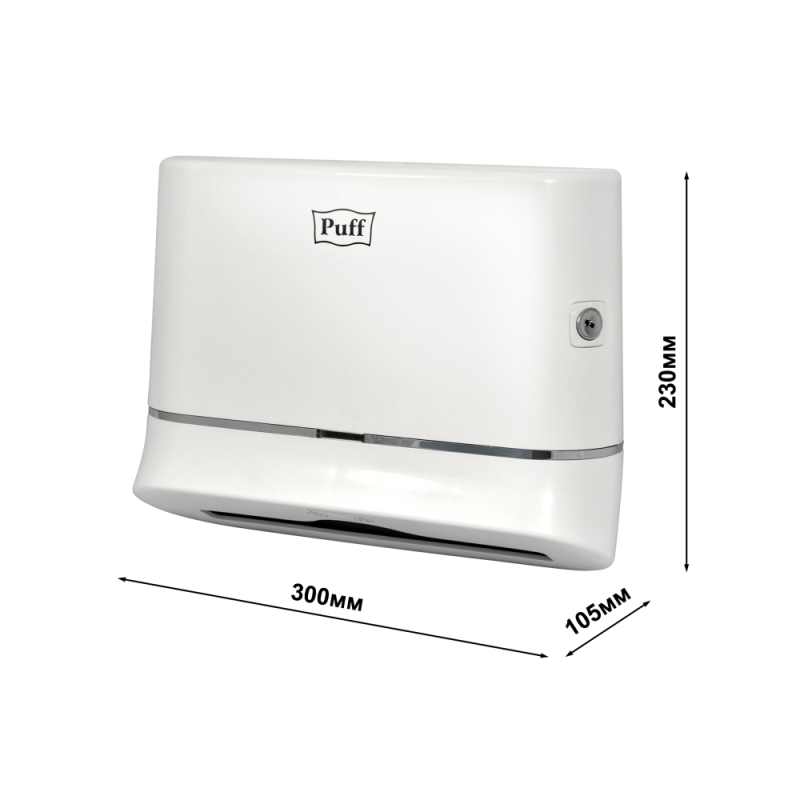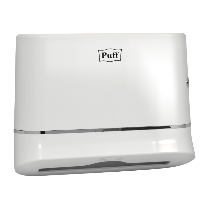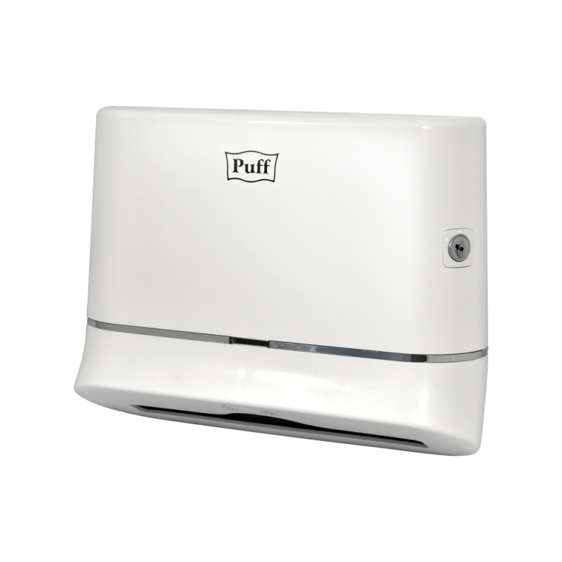 Диспенсер для бумажных полотенец Puff-5135 из ударопрочного пластика, что делает аксессуары устойчивыми к механическим повреждениям. Модель оснащена металлическим замком, что предотвращает случаи кражи и чрезмерного расходования бумажных полотенец. Подходят для общественных мест со средней и высокой проходимостью.