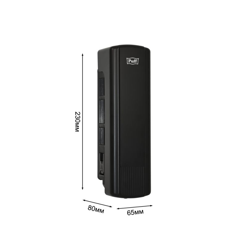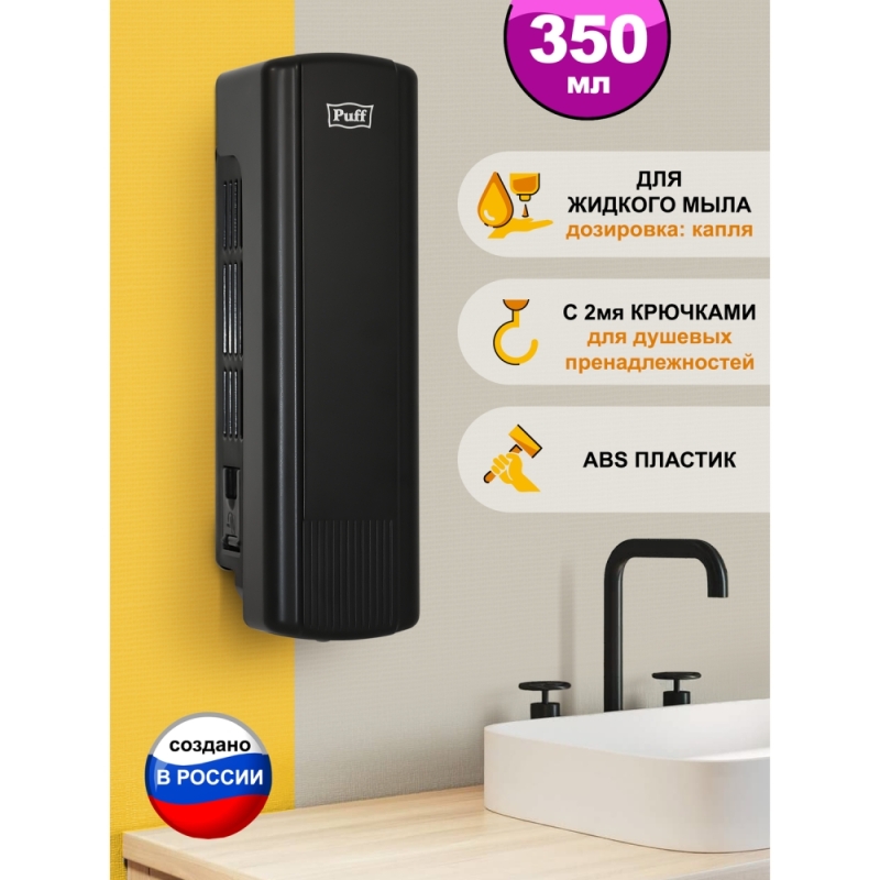 Дозатор Puff-8110Bl выполнен в стильном дизайне черного цвета с матовой поверхностью, такой дизайн подчеркнет уникальную атмосферу заведения.