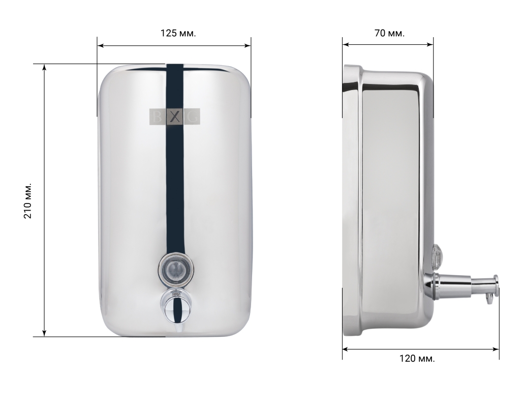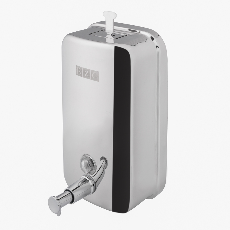 Антивандальный дозатор BXG-SD-H1-1000 для жидкого мыла. Подходит для туалетных комнат со средней и высокой проходимостью. Отличается повышенной стойкостью к возникновению ржавчины и “проеданию” металла. Закрывается на ключ.
