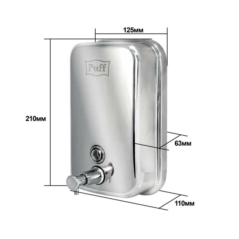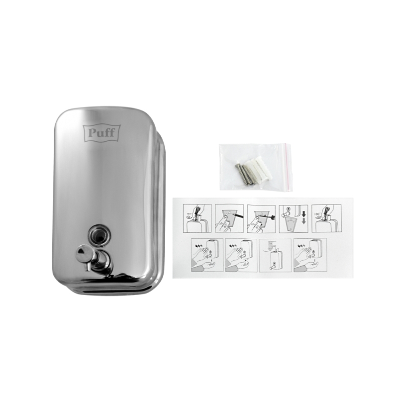 Антивандальный дозатор для жидкого мыла Puff 8615 из нержавеющей стали марки AISI 304. Оснащен смотровым окошком для контроля за остатком мыла. Монтируется на стену, необходимый крепеж в комплекте. Надженый механизм подачи мыла. Заправляется наливным способом из канистр/бутылей. Подходит для помещений с повышенной влажностью и резкими перепадами температур.