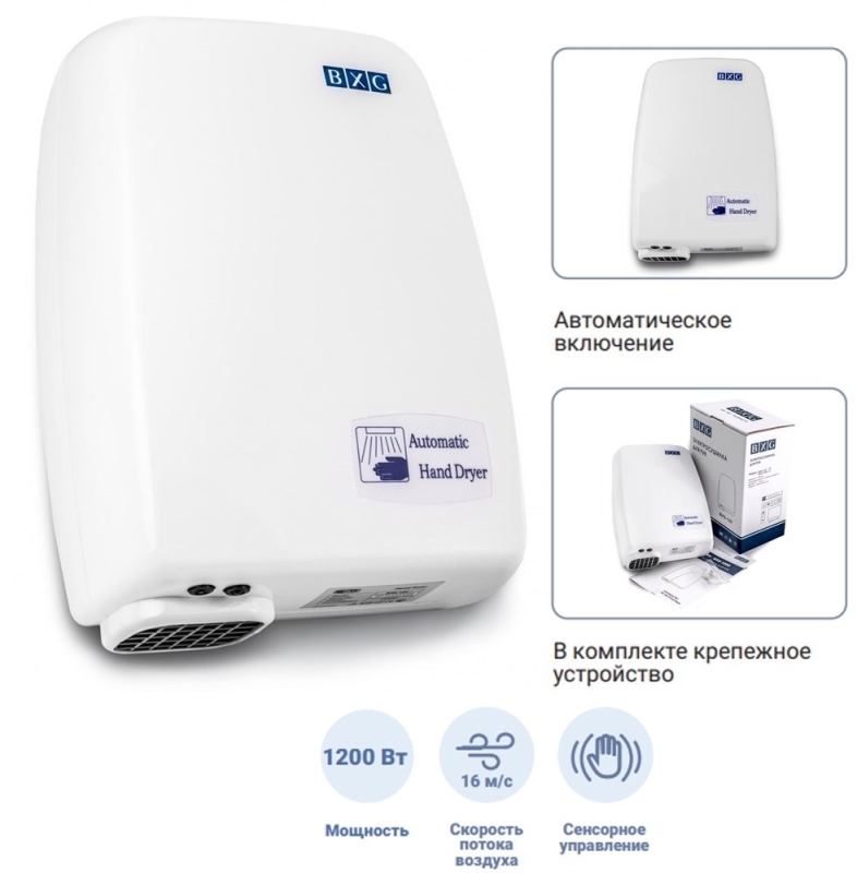 Электросушилка для рук BXG 120 представляет собой компактный, но высокопроизводительный прибор. Защита от перегрева и перегрузки позволяет избежать преждевременной поломки изделия.