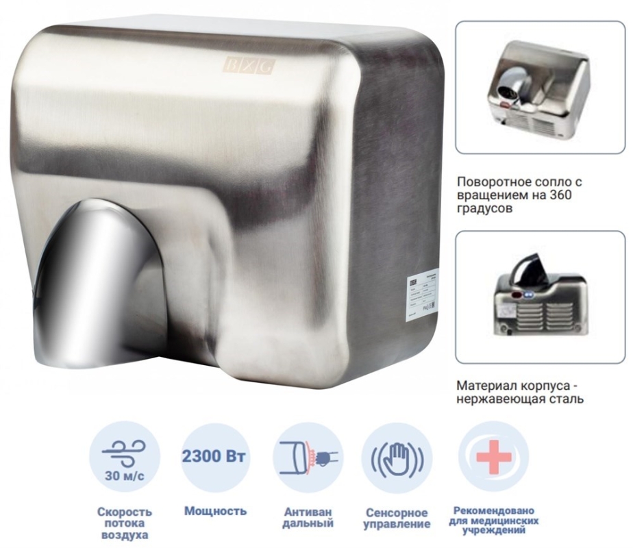 Электросушилка для рук BXG-250 А UV обеспечивает быструю и эффективную сушку рук.