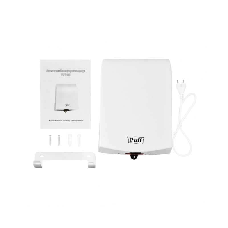 Электросушитель для рук Puff-8951 – эталон надежности и качества. Электросушитель для рук высокоскоростной, белый, мощность 1,0 кВт. Сушилка из ABS-пластика, скорость потока 90 м/с, сушка рук 8-12 сек, настенная, сенсорная.
