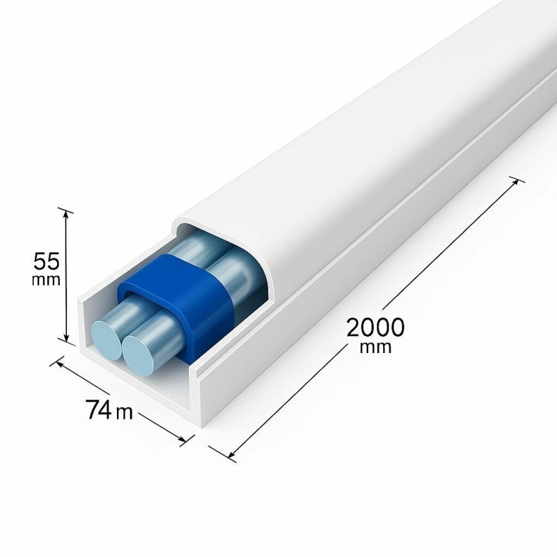 Кабель-канал используется для скрытой прокладки электрических и информационных кабелей, фреоноводных трасс систем кондиционирования.
