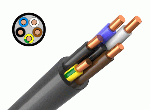 ВВГнг 5х1.5 - кабель силовой медный с 5 медными токонесущими жилами сечением 1,5 квадратных миллиметров, в изоляции и оболочке из негорючего поливинилхлоридного пластиката.