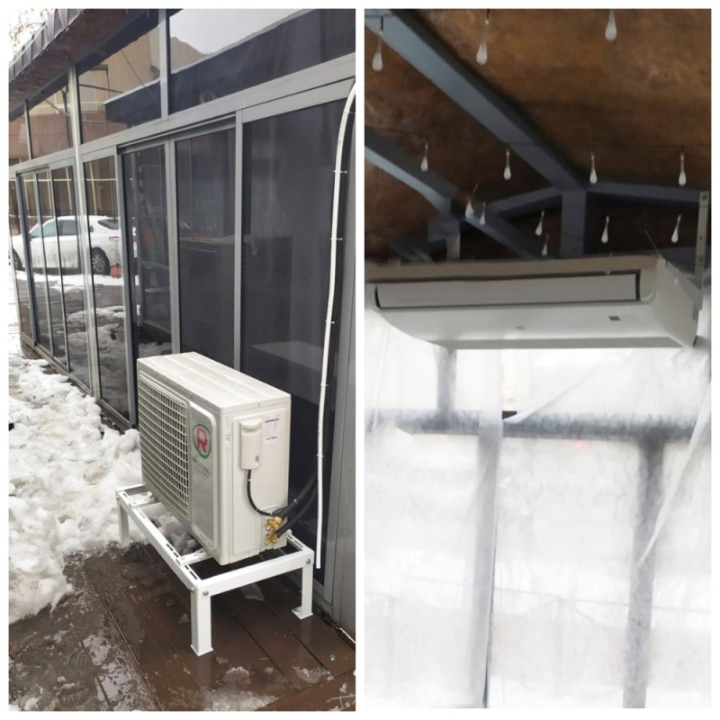 - установка внутреннего и внешнего блоков полупромышленного кондиционера.