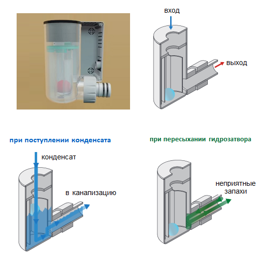 Актуально при отводе конденсата внутри или непосредственной близости от дома, офиса или зоны активной жизнедеятельности. Некоторые существующие сифоны-аналоги устанавливаются на стенах без какой-либо возможности их будущей проверки и контроля.