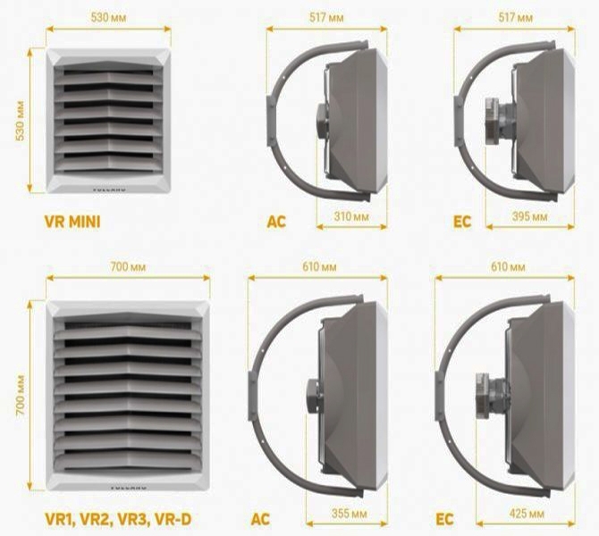 Универсальность. Тепловентиляторы Volcano используют для обогрева помещений любого типа: производственных объектов, складов, гаражных комплексов, теплиц, супермаркетов, спортивных залов, автосервисов и иных объектов. Модель Volcano VR1 ЕС эффективна для обогрева помещений средних размеров.