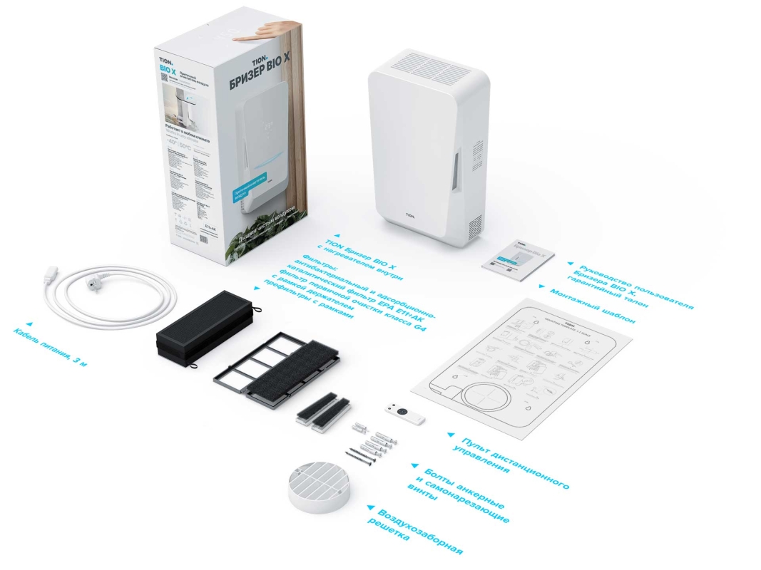 TION Бризер Bio X Standard – приточный очиститель воздуха компактных габаритов и очисткой входящего уличного воздуха для безопасного проветривания.