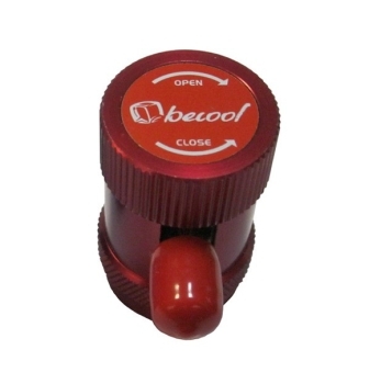 Быстросъёмная муфта высокого давления с вентилем предназначена для подсоединения к порту высокого давления автомобильного кондиционера без открытия доступа к системе циркуляции хладагента. Поворот вентиля по часовой стрелке приводит в действие механизм опускания штока-депрессора, который нажимает на золотник и открывает доступ к системе циркуляции хладагента.
